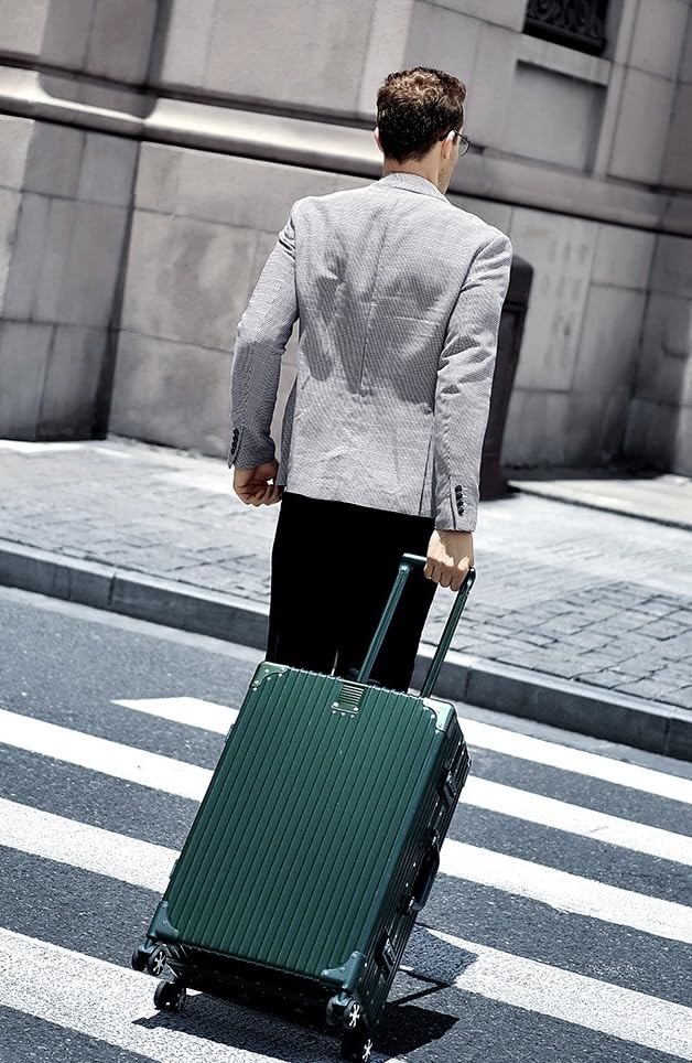 [Yuweijie] スーツケース アルミフレーム キャリー ケース機内持ち込み 預け入れスーツケース 大型トロリーケース 軽量キャリーバッグ 静音ダブルキャスター 耐衝撃 旅行 ビジネス 出張 tsaロック付 保護カバー付き, mサイズ24inch 4泊5日 グリーン 60L