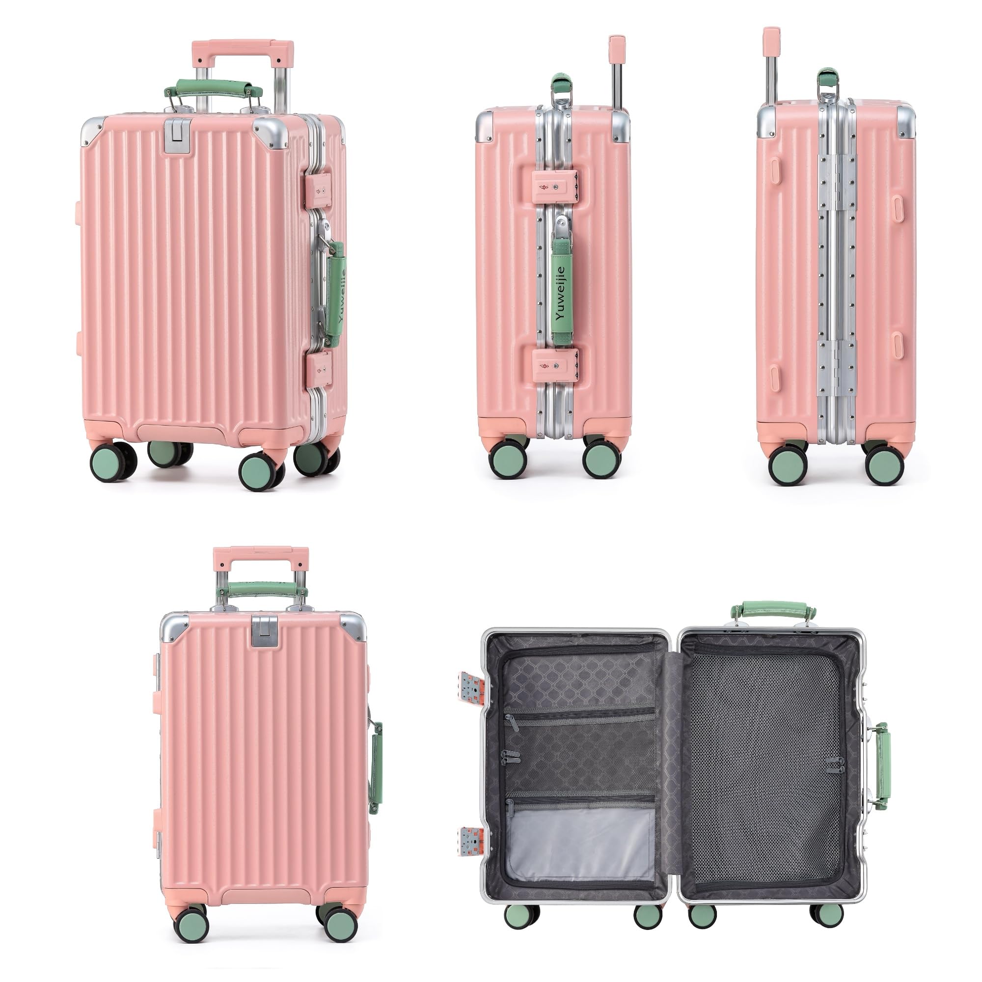 [Yuweijie] 新感覚!モダン!スーツケース キャリーケース 機内持ち込み 大型 軽量アルミフレーム式 キャリーバッグ 静音 ダブルキャスター TSAロック レトロ おしゃれなハンドル 疲れない設計 入学 海外旅行出張 Sサイズ ピンク 1-3泊 40L
