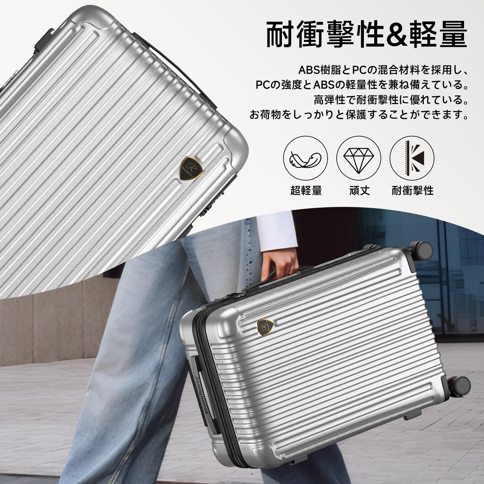【新着商品】[SupTrip] スーツケース 機内持ち込み キャリーケース 拡張機能付き キャリーバッグ ストッパー付き カップホルダー付き USBポート付き 携帯スタンド TSAロック搭載 物掛けフック 大容量 超軽量 静音 ダブルキャスター おしゃれ 旅行 ビジネス 出張 修学 泊まる 入院 (シルバー S(1~3泊/40L/機内持込)) | allureshop