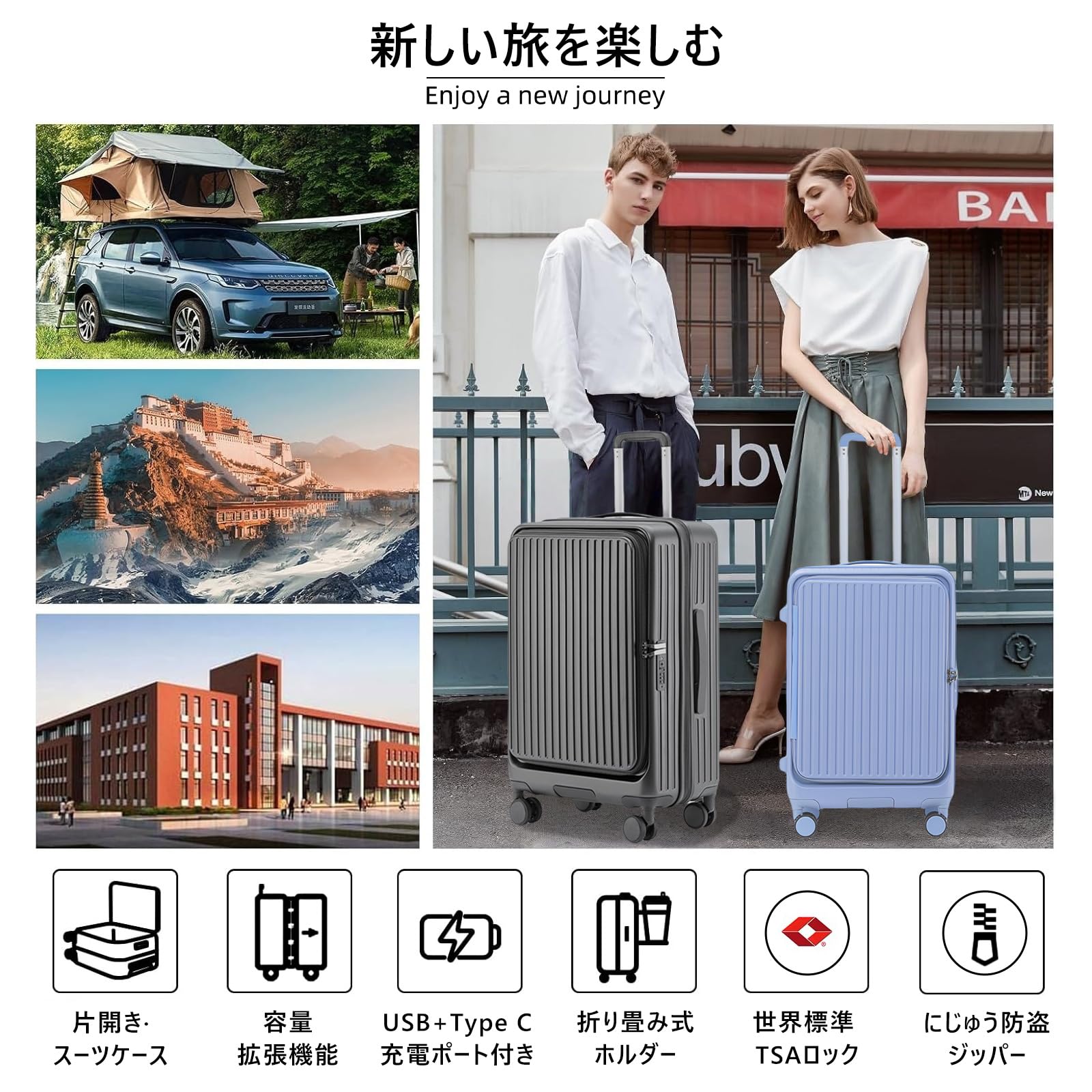 【在庫処分】[SupTrip] スーツケース キャリーケース 多機能 片開き 拡張機能付き 機内持ち込み キャリーバッグ フロントオープン USBポート付き カップホルダー付き 隠しフック機能 超軽量 耐衝撃 静音 360度回転 大容量 TSAロック搭載 旅行 ビジネス 出張 (パープル M (4~6泊/65L)) | allureshop