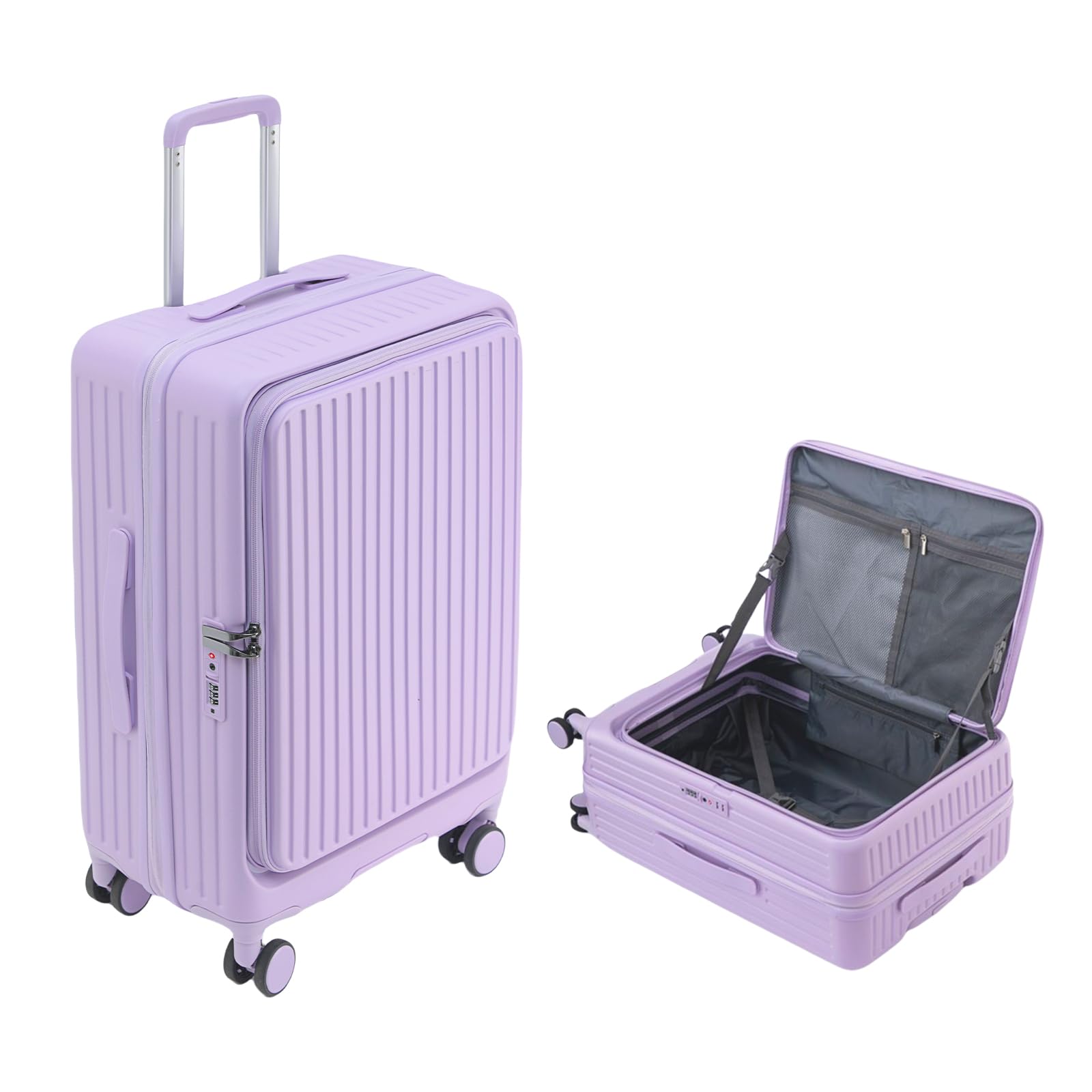 [SupTrip] スーツケース キャリーケース 多機能 片開き 拡張機能付き 機内持ち込み キャリーバッグ フロントオープン USBポート付き カップホルダー付き 隠しフック機能 超軽量 耐衝撃 静音 360度回転 大容量 TSAロック搭載 旅行 ビジネス 出張 (パープル M (4~6泊/65L))