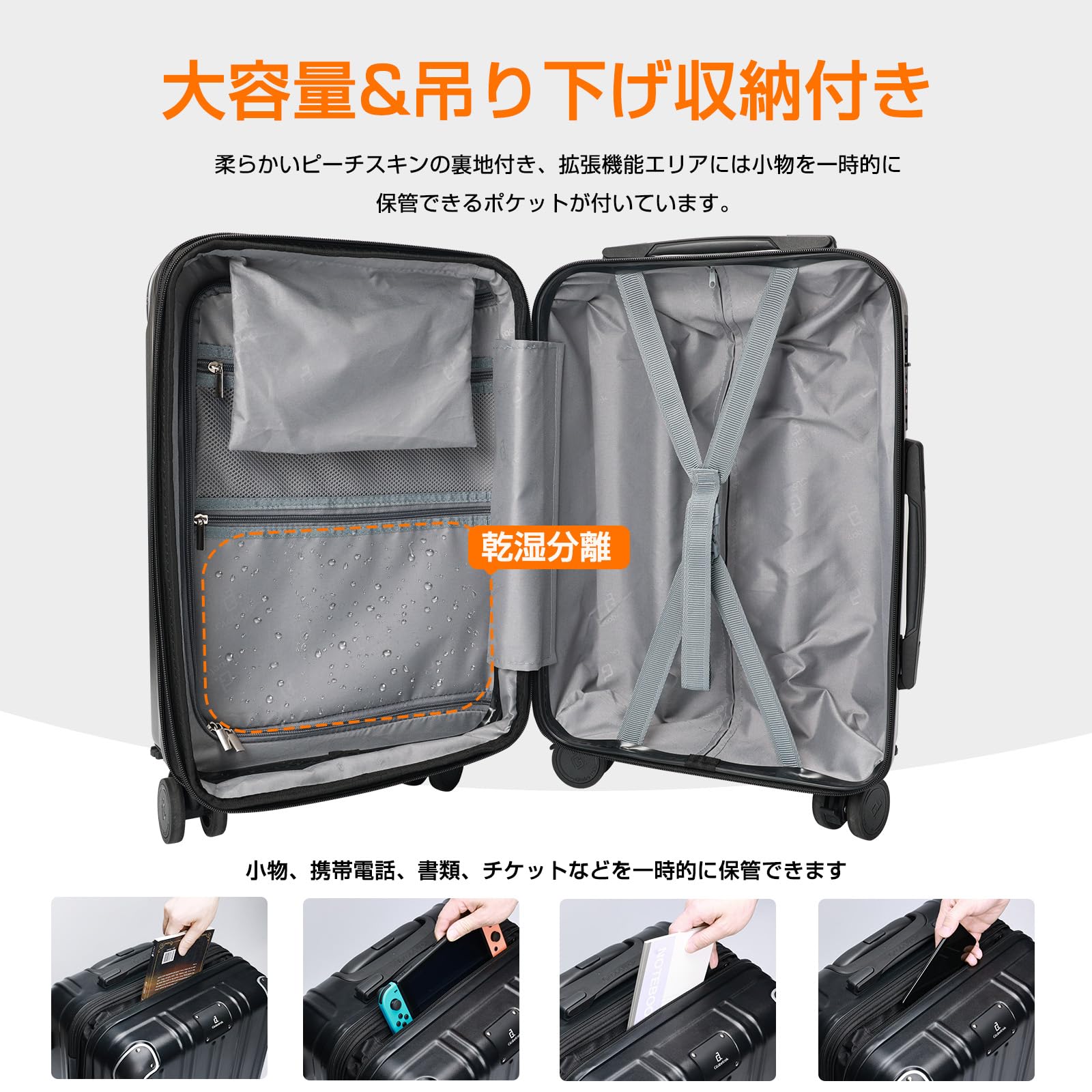 [Globetrek] 現役CA監修・日本企業企画 スーツケース キャリーケース 機内持ち込み 拡張機能付き 超軽量 耐衝撃 キャリーバッグ 多機能 360度回転 ストッパー付 静音 luggage suitcase 大容量 大型 TSAロック 旅行 ビジネス 出張(ホワイトSサイズ/機内持ち込み:1~3泊/40L)