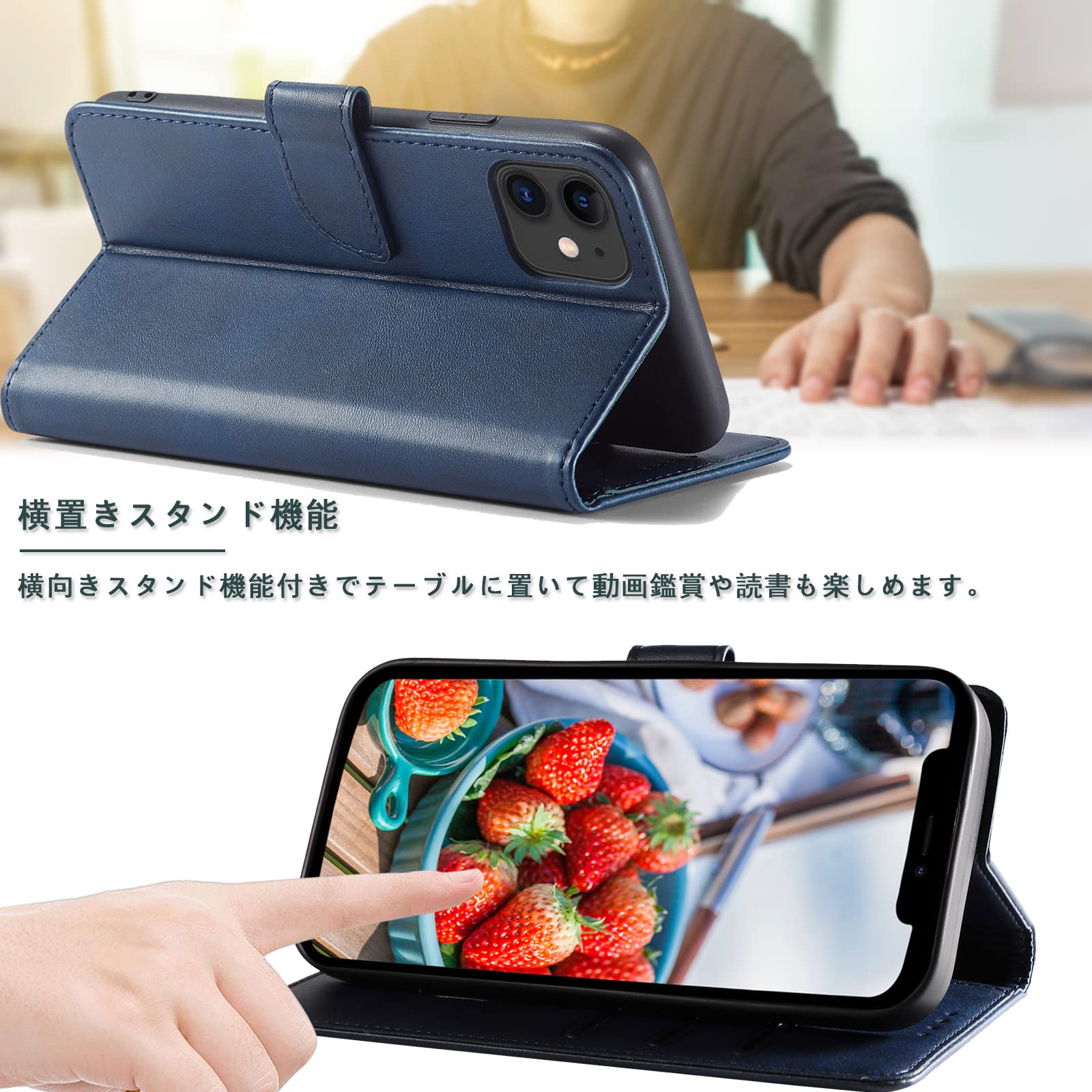 【スタンド機能】:このIphone 手帳型ケースは横置きのスタンド機能が付いて、好きな角度を調整して動画鑑賞や読書などを楽しめます。 Iphone カバーにスピーカーホールを設置し、閉じた状態での通話を可能にしました。