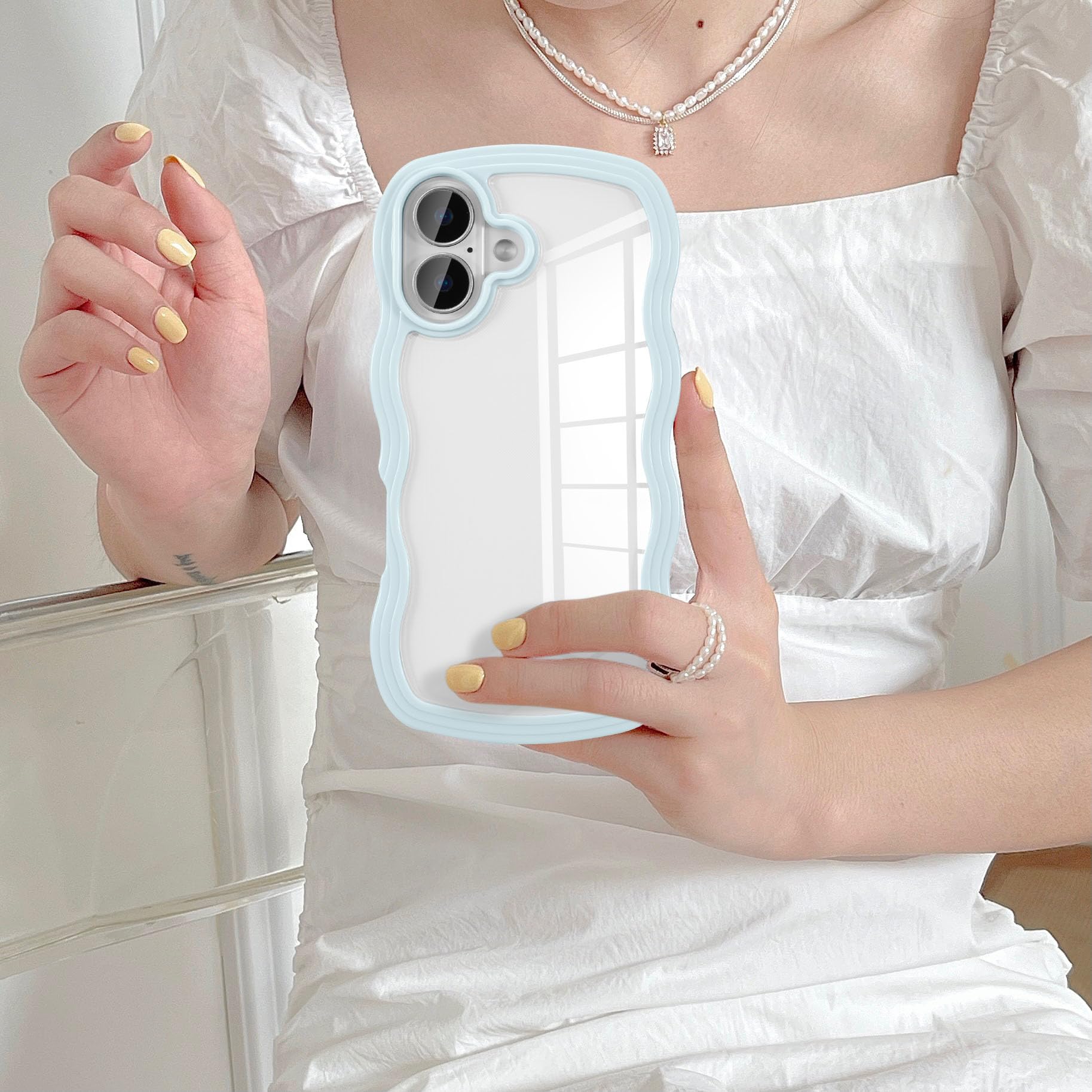 【2022最新】UEEBAI 対応 iPhone 16 用の ケース ソフト TPU カバー 可愛い おしゃれケース 透明 ウェーブ デザイン スマホケース ワイヤレス充電対応 軽量 薄型 耐衝撃 人気 波型 バンパー スマホケース - ペールブルー | allureshop