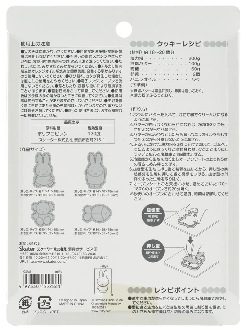 スケーター(Skater) スタンプクッキー型 食パン抜き型 ミッフィー 4個セット CSM1-A