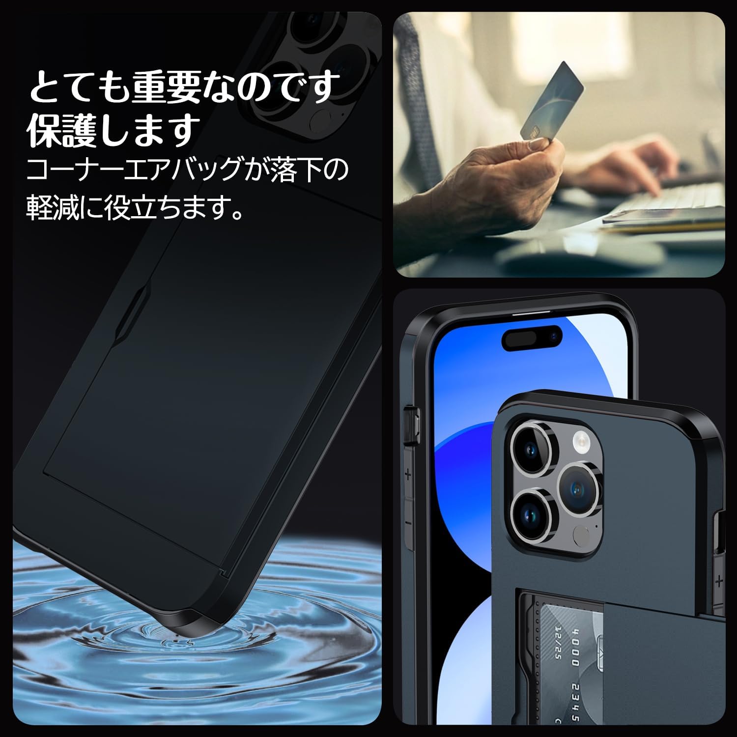 【全密閉式隠しカードホルダー設計】いPhone 16pro保護カバーは2枚のカードを安全に保管することができる。財布を持ち出す必要がなく、クレジットカード、現金を簡単に持ち運ぶことができます。全閉鎖設計はカードの安全を確保する。