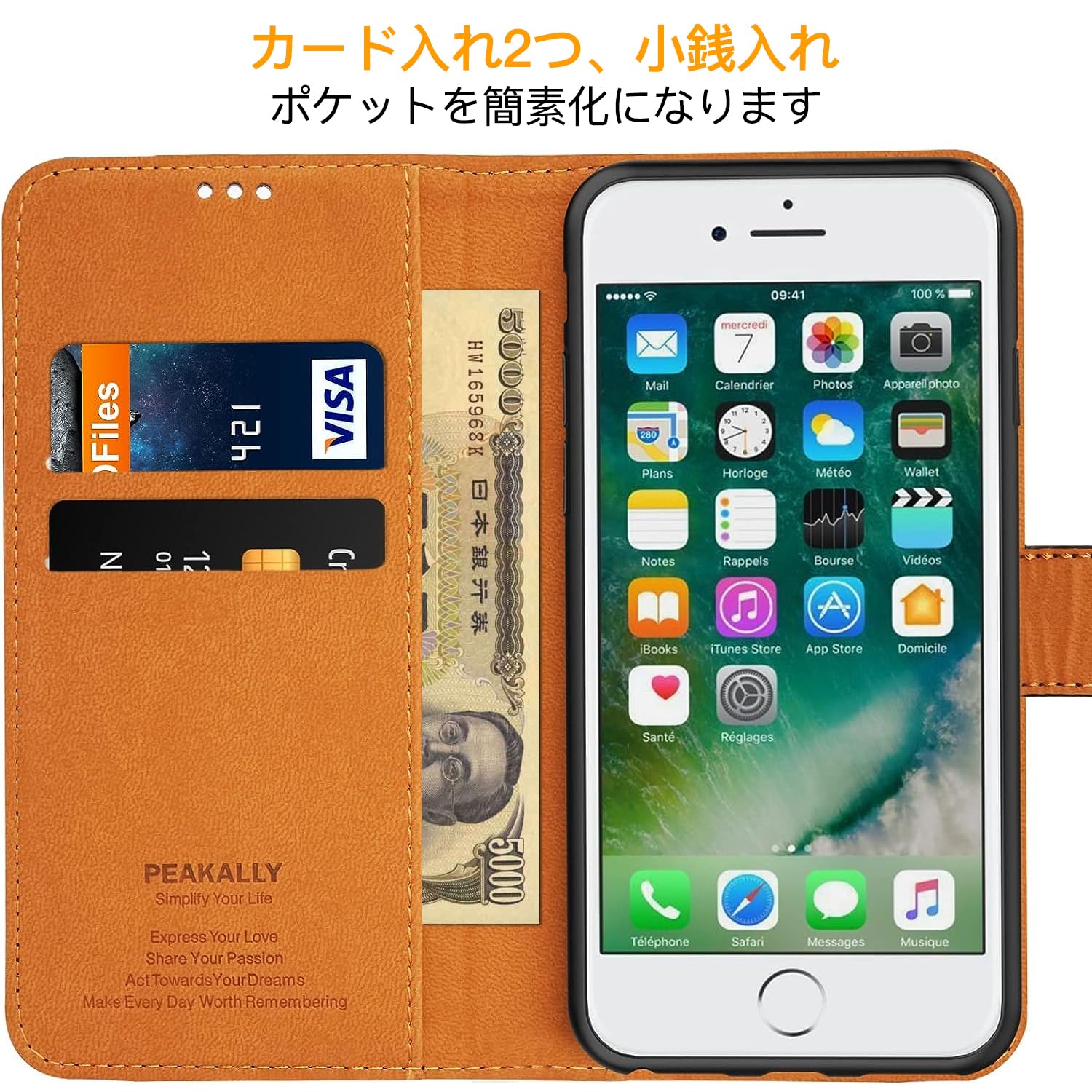カード入れとウォレット:内側にはのカード入れ2つとウォレットがつき、カードやお札を収納できますから、財布を持ち歩く必要がなくなります。