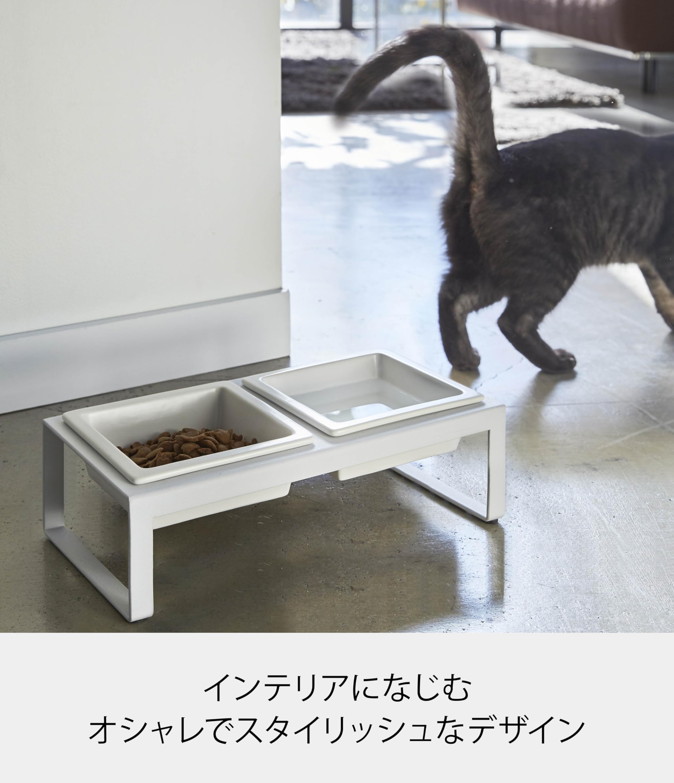 山崎実業(Yamazaki) ペットフードボウルスタンドセット トール ホワイト 約W29XD15.5XH10cm タワー 4744