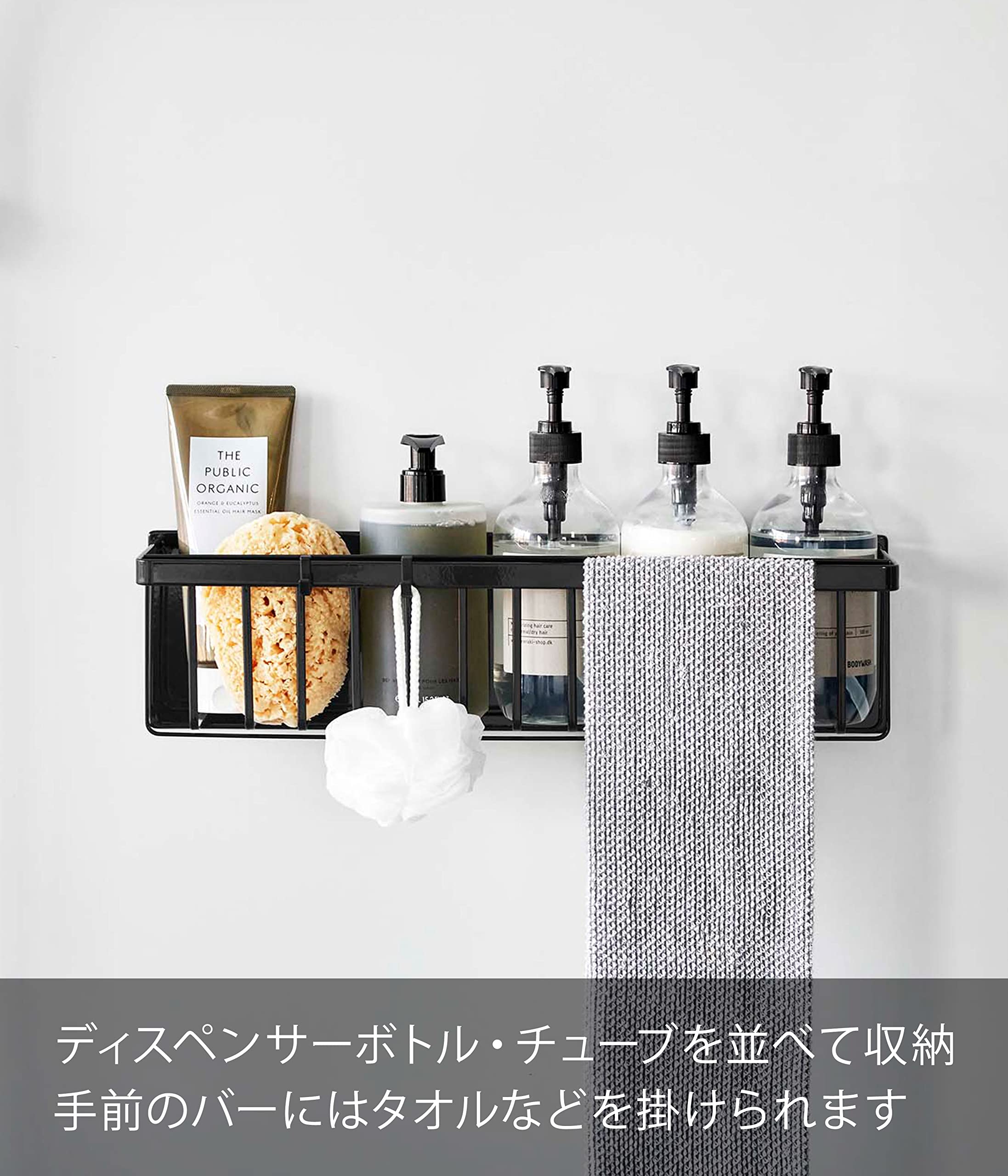 【新着商品】山崎実業(Yamazaki) マグネット バスルームバスケット ワイド ブラック 約W44.3×D12.3×H12cm タワー tower 浴室ラック フック付き 奥行スリム 浮かせる収納 3770 | allureshop