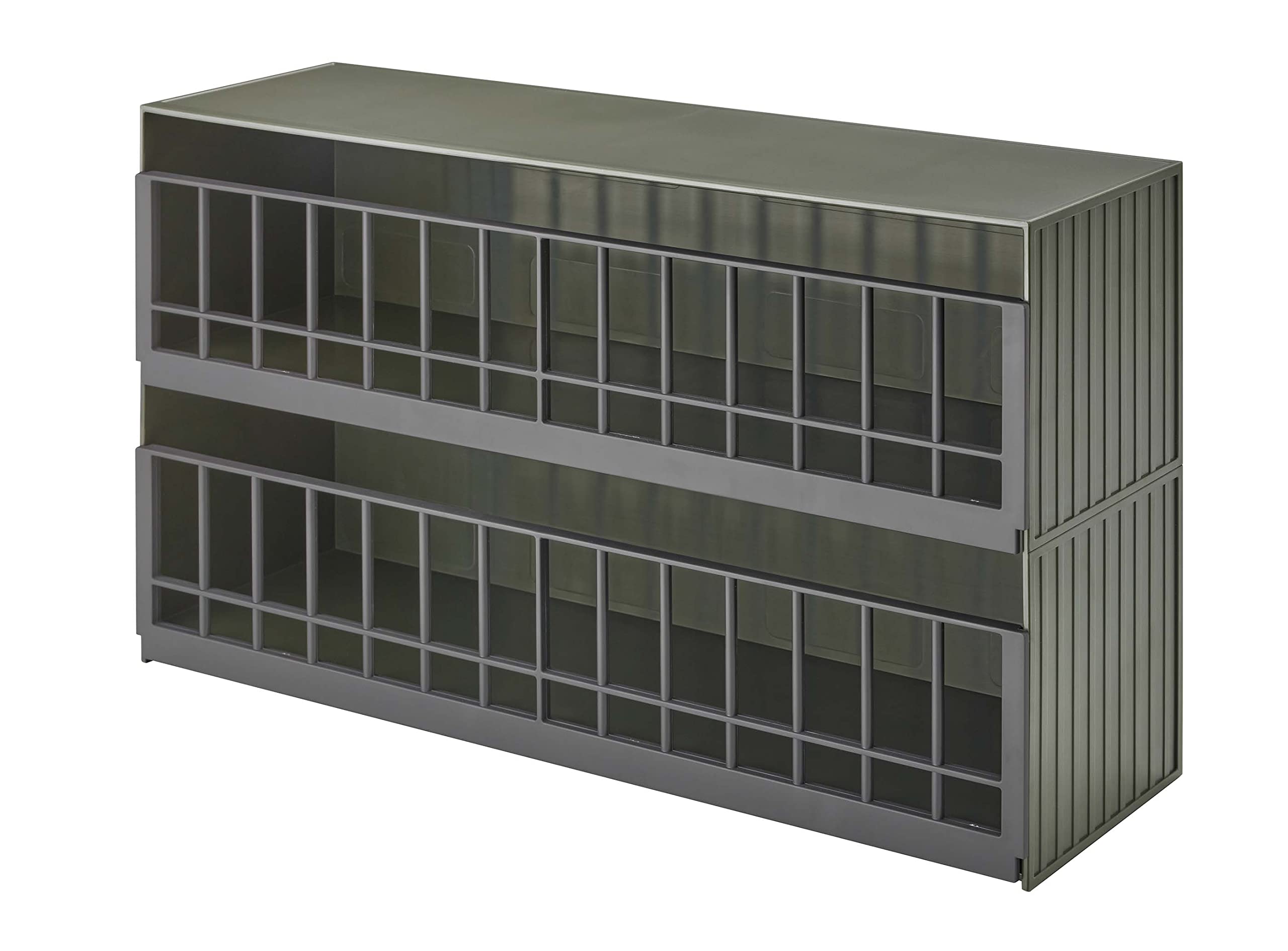 おもちゃの恐竜やアニマルをケージに入れて収納できる大容量の2段ラック。