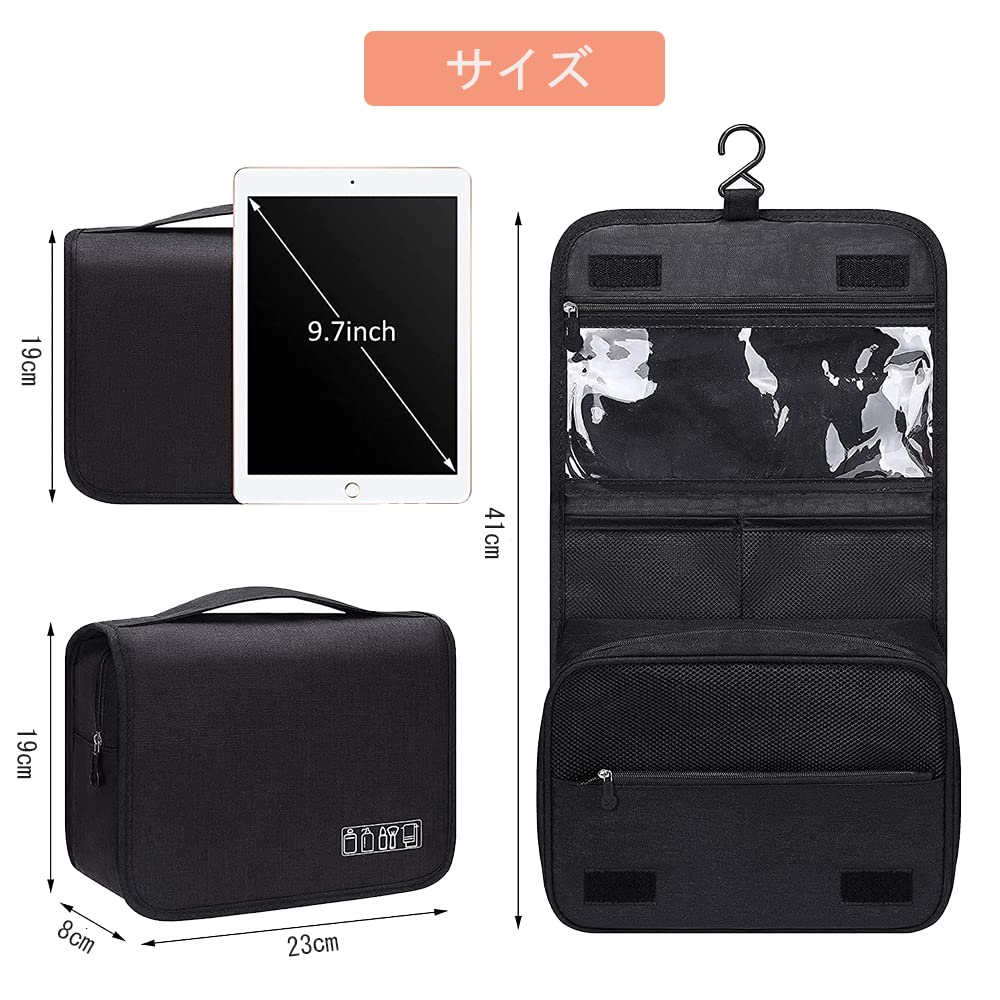 DFsucces トラベルポーチ 大容量 フック付き トラベルバッグ 洗面用具入れ 化粧ポーチ 防水 軽量 持ち運び便利 旅行 出張 収納バッグ (ブラック)