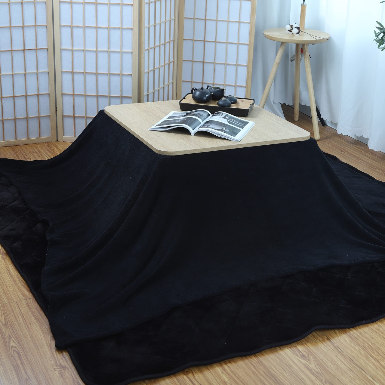 こたつ毛布 軽量 こたつ中掛け毛布 正方形 暖かい なめらか やわらか 毛布 こたつ ブランケット マイクロファイバー素材 こたつカバー こたつ上掛け ソファーカバー ベッドカバー マルチカバー ブラック 185x185cm