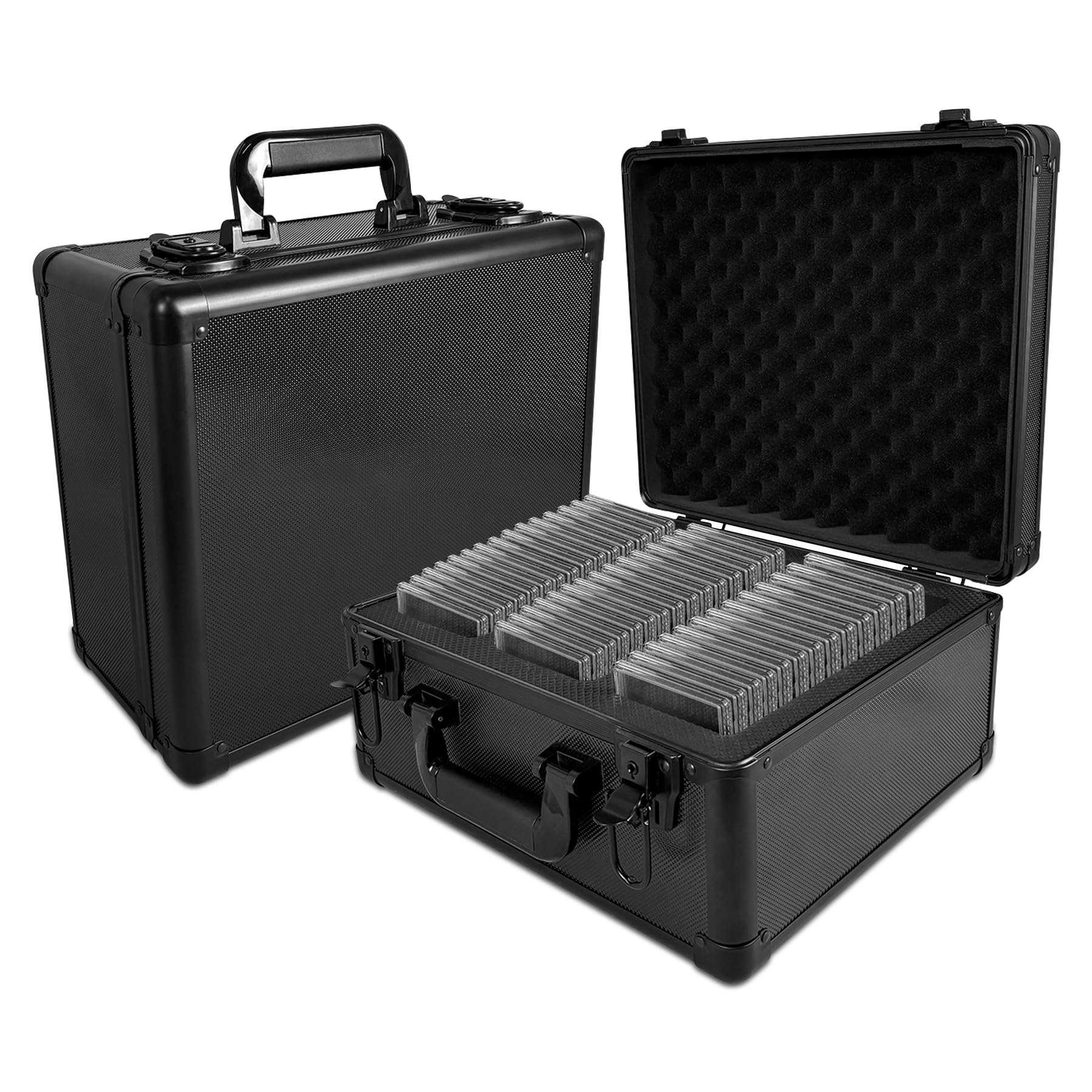 【人気商品】HG CHASING TRIBE デッキケース カード4500枚以上収納可能なアルミ製アタッシュケース 【2025最新アップグレード】 マグネットローダー 用 ケース トレカケース ゲームカード ストレージボックス カードケース トレーディングカードゲーム (4枚の長い仕切り15枚の小さな仕切りを装備) (ブラック PSA 3列収納)