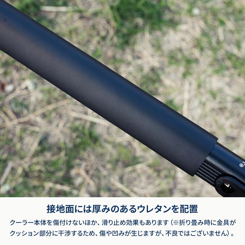 【小型クーラーにも大型クーラーにも対応】幅と高さの2段階調節が可能なクーラースタンド。小型クーラーから大型クーラーまで、様々なサイズに対応します。本体カラーはシックなマットブラックを採用。キャンプサイトをクールに引き締めます。