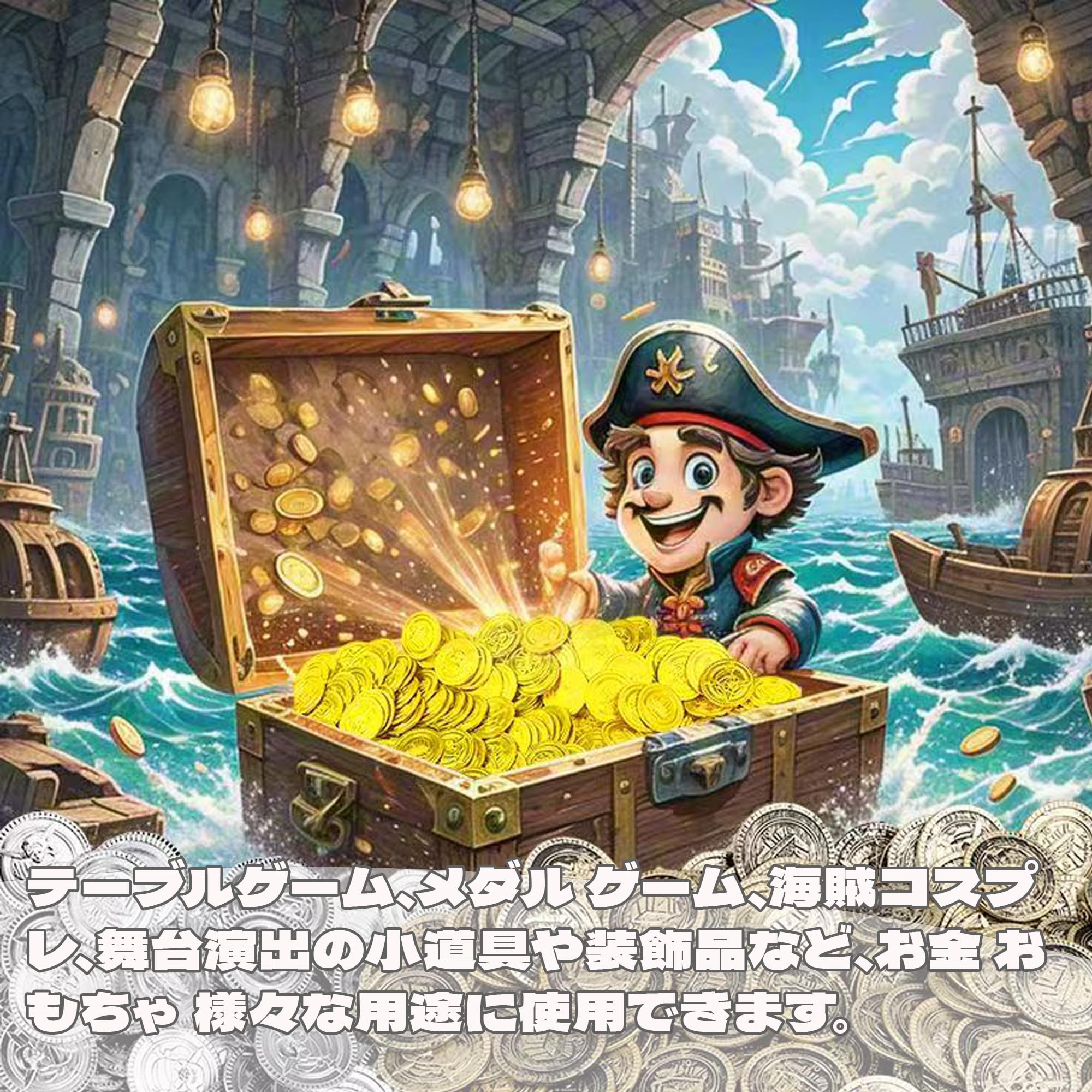 【多目的利用】テーブルゲーム、メダル ゲーム、海賊コスプレ、舞台演出の小道具や装飾品など、お金 おもちゃ 様々な用途に使用できます。